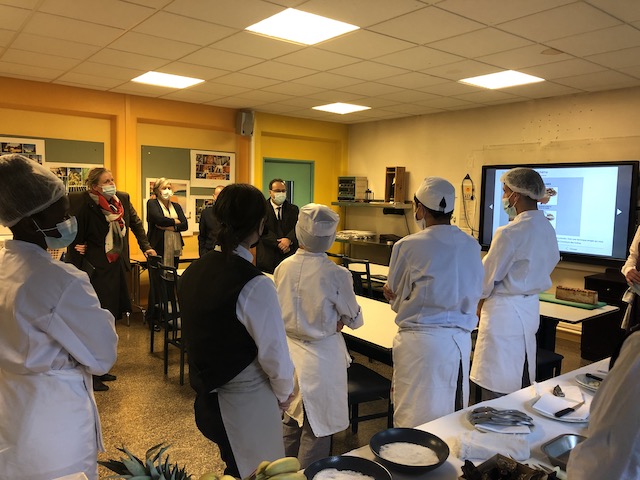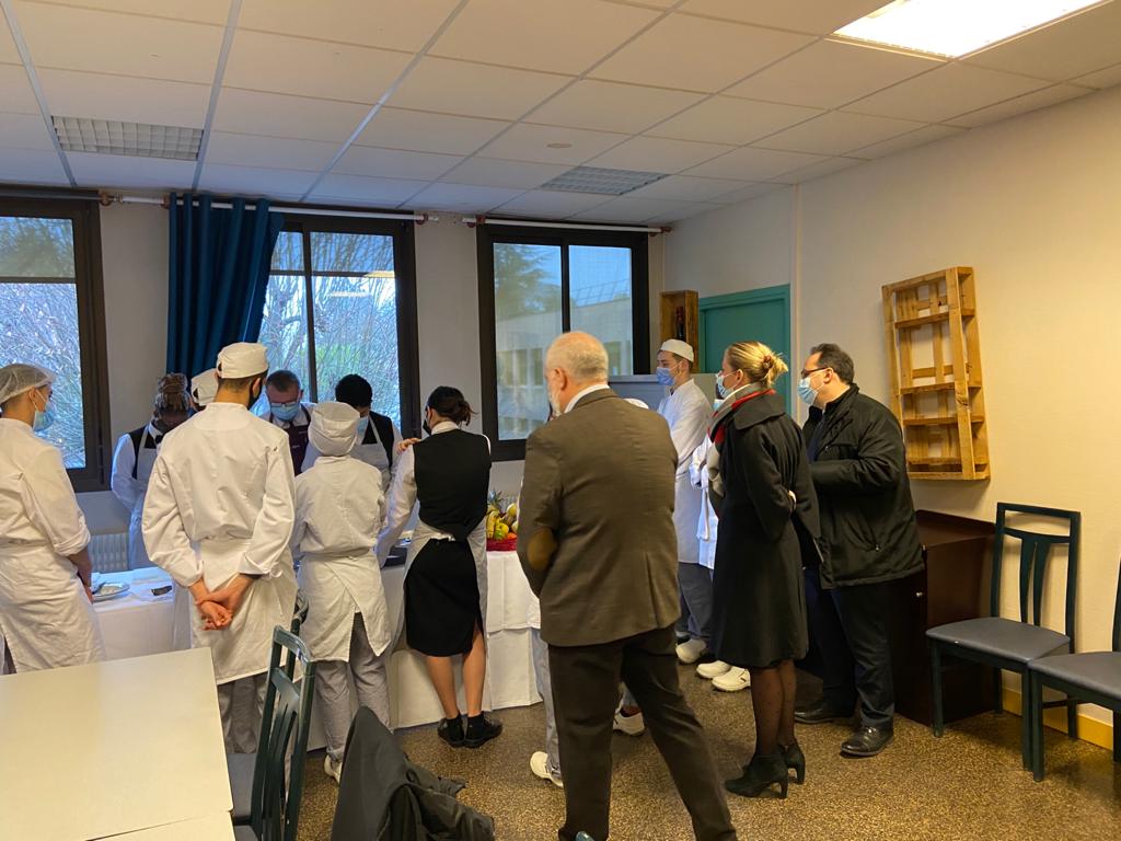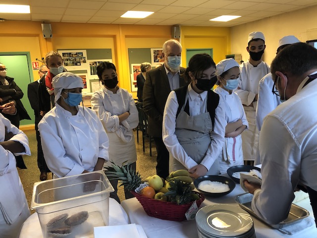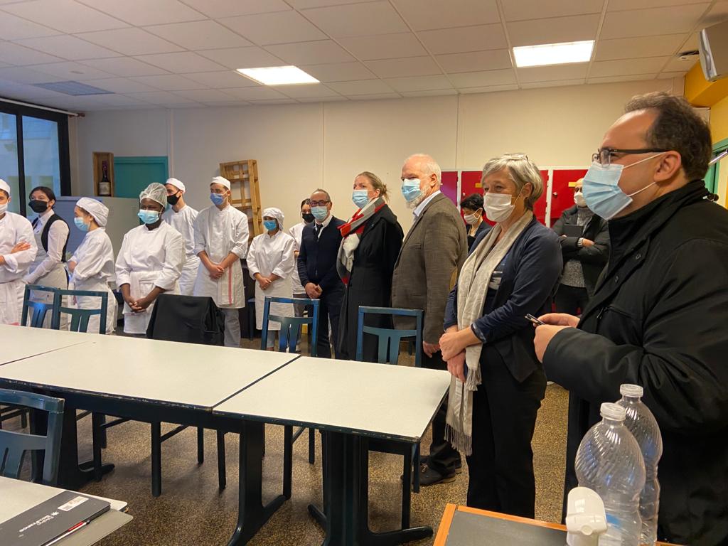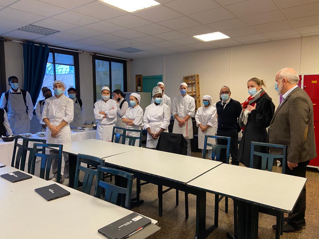 La délégation a poursuivi sa visite en allant à la rencontre des élèves de 2MHR2 de la classe de seconde famille des métiers Hôtellerie-Restauration.