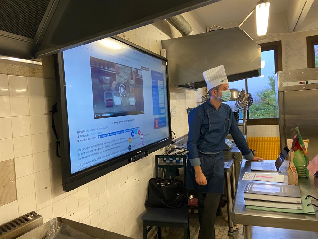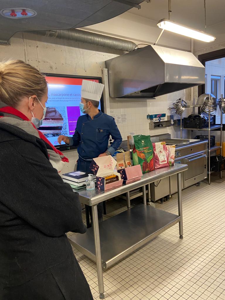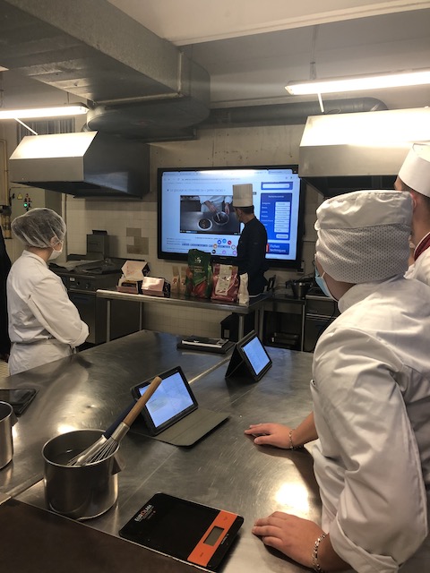 Un cours en présentiel a été présenté, par Laurent Nadiras professeur de pâtisserie du lycée avec ses élèves de CAP Pâtisserie en 1 an.