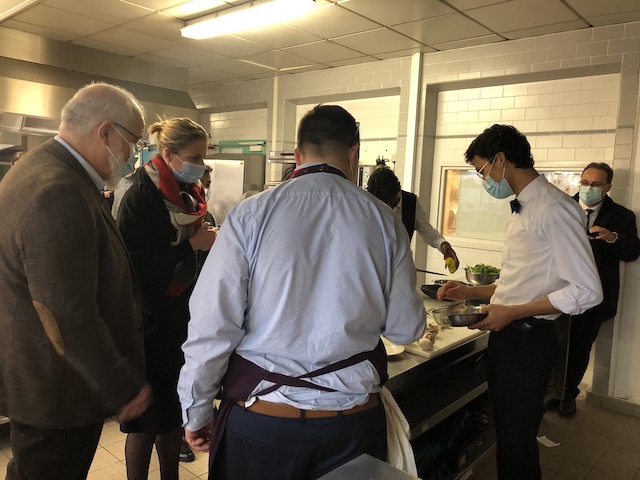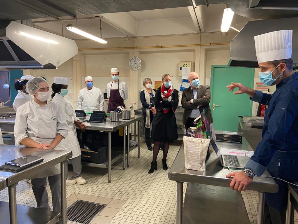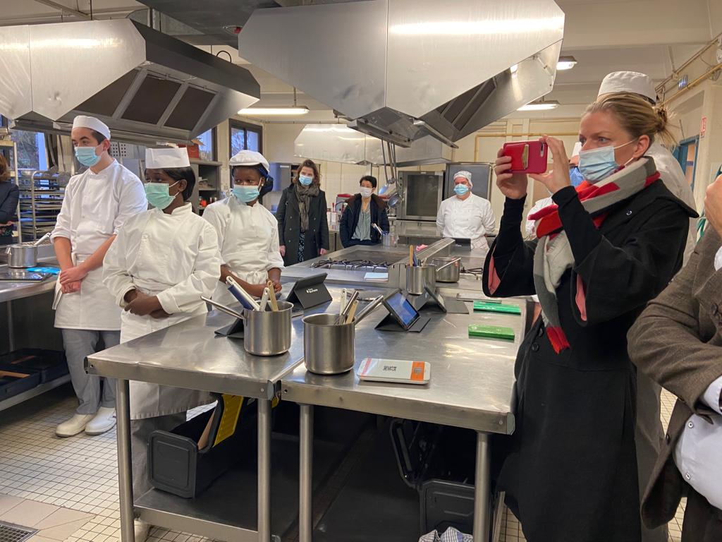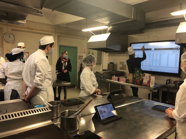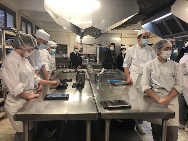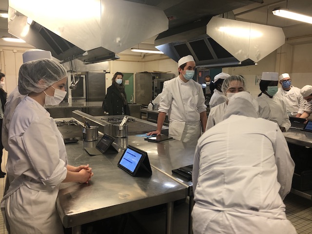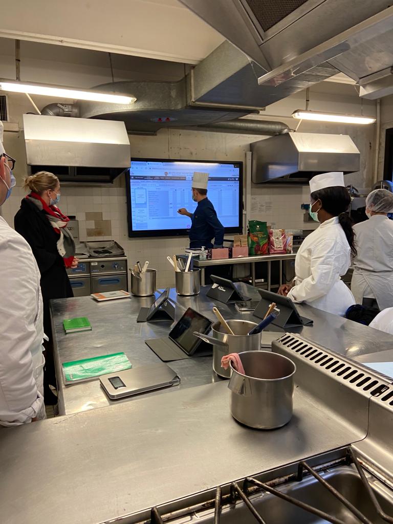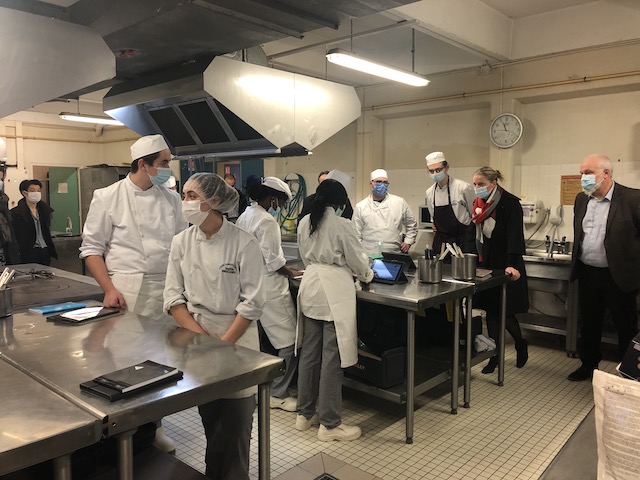 La visite s’est terminée à l’office du restaurant pour un atelier de préparation, puis au restaurant d’application autour d’un Brunch préparé par les élèves de CAP 1er année en C&S en HCR accompagnés de leur professeur de commercialisation et service en restaurant Mr Stéphane Bondu afin d’échanger sur les pratiques pédagogiques autour du numérique.