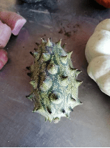 Sur le site de Neuville sur Oise, il expose quelques légumes qui servent à présenter aux nombreux chefs de passage ou aux classes qui viennent visiter son travail de passionner.et ses trouvailles »