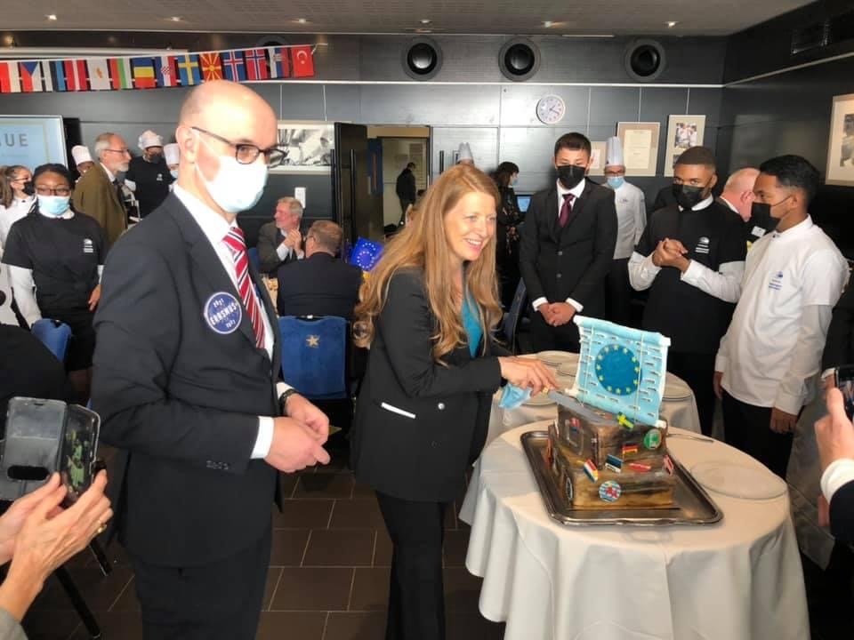 « Le lycée est très impliqué dans le débat parlementaire et s’est vu remettre une plaque par le Parlement européen en France ! Ces #ErasmusDays sont également l’occasion d’échanger avec les élèves et de goûter des spécialités européennes ! »