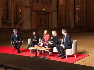 À la suite de l’exposition, les fondateurs, Charline Avenel, Rectrice de l’Académie de Versailles, Catherine Pégard, Présidente de l’Établissement public du Château, du musée et du domaine national de Versailles et François Germinet, le Président de CY Cergy Paris Université, se sont réunis autour de l’inspecteur général de l’administration de l’éducation nationale et de la recherche, Marc Foucault,ainsi que les financeurs du pilote et du projet du Campus, Olivier Brault, directeur général de la Fondation Bettencourt Schueller, Othman Nasrou, vice président du conseil régional d’Ile-de-France et Guillaume BoudySecrétaire générale pour l’investissement, dans l’amphithéâtre de l’Académie équestre nationale du domaine de Versailles, pour présenter le projet et leur partenariat aux invités.