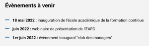 Faciliter votre accès à la formation, vous permettre d’être acteur de votre parcours, vous donner la possibilité de faire reconnaître vos compétences, soutenir vos projets collectifs et les dynamiques locales : l’école académique de la formation continue (EAFC) concrétise l’ambition de transformer la formation continue pour l’ensemble des personnels afin de construire des parcours au plus près de vos besoins et de votre environnement de travail.