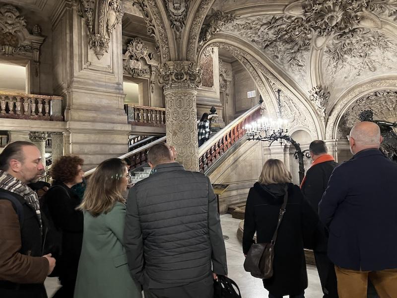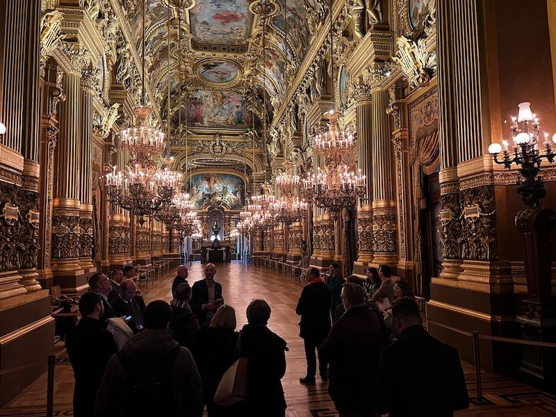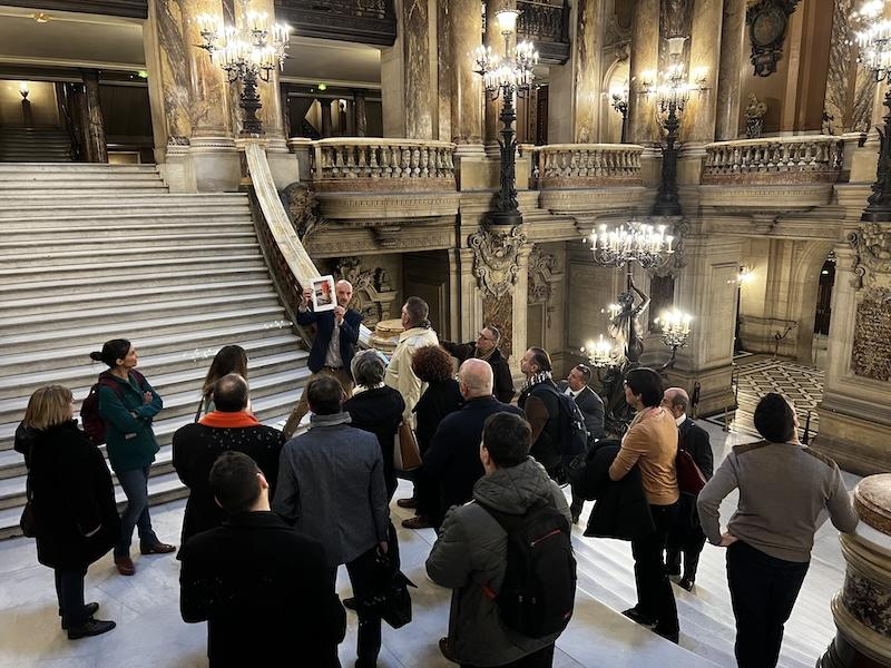 - Dans un premier temps, une visite privée de l’Opéra Garnier qui est un théâtre national qui a la vocation d’être une académie de musique, de chorégraphie et de poésie lyrique, coordonnée par Hervé Cochet, professeur coordonnateur du programme « Dix Mois d’École et d’Opéra » pour le rectorat de Versailles.