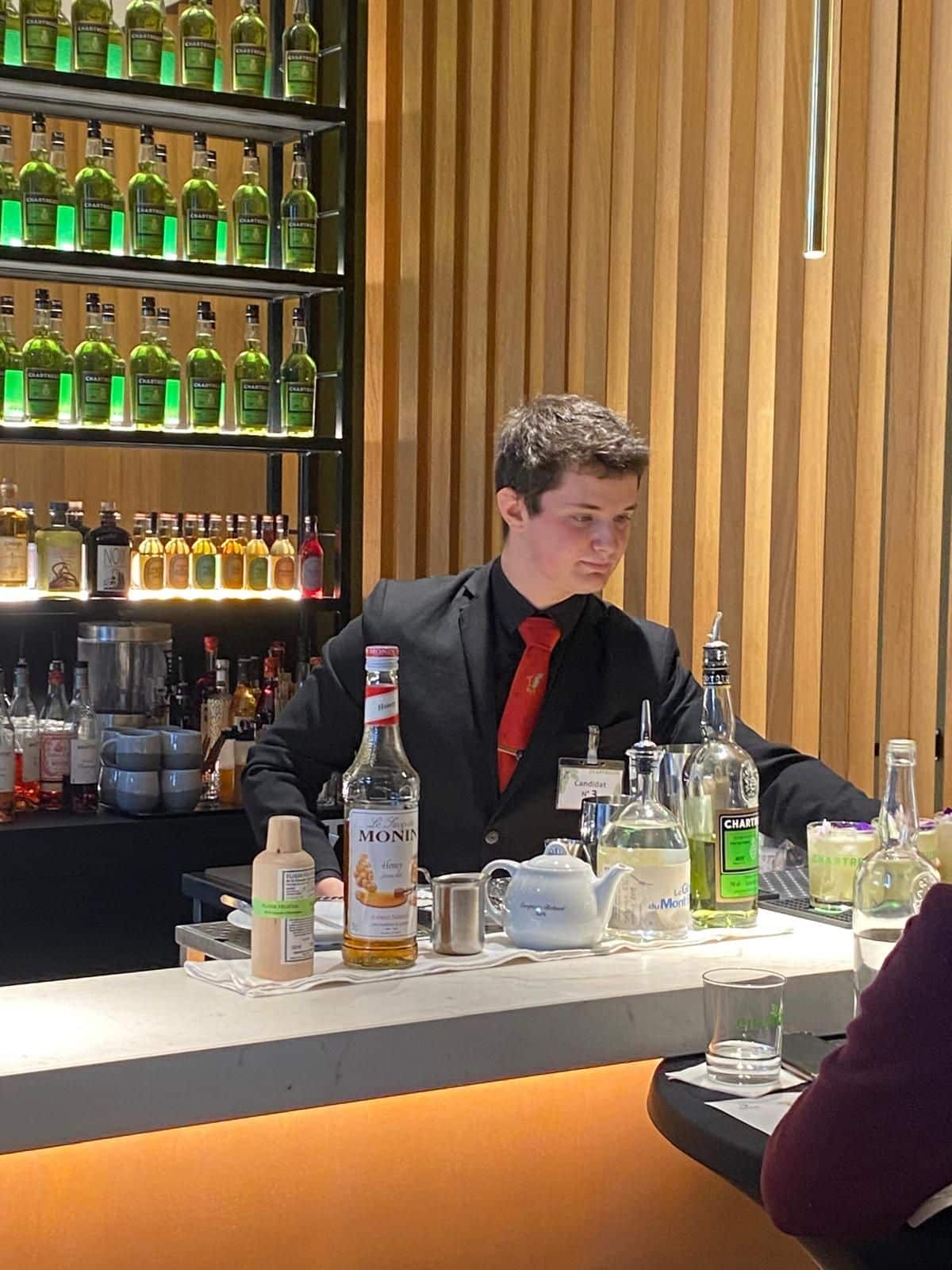 Quentin Audouin, élève en Certificat de Spécialisation Métiers du Bar, a relevé avec brio le défi du Concours Chartreuse. Ce prestigieux concours met en lumière le savoir-faire des futurs professionnels du bar autour des produits emblématiques de la marque Chartreuse.
