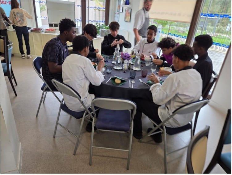 Le lycée de L’Observatoire de Meudon périnnise son partenariat avec le Campus Horticole de St germain en Laye pour la cinquième année. Un échange toujours aussi fructueux sur les circuits courts, les produits bio et de saisons concernant les fruits et les légumes. Découverte du Campus sur une journée pour une classe de seconde famille des métiers et quelques éco-délégués et le ramassage de produits maraîchers. Nous les recevons le lendemain pour cuisiner leurs produits et les déguster autour d’une jolie table dressée par les deux écoles.